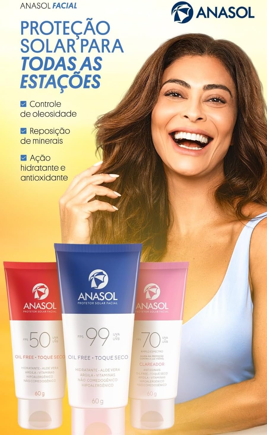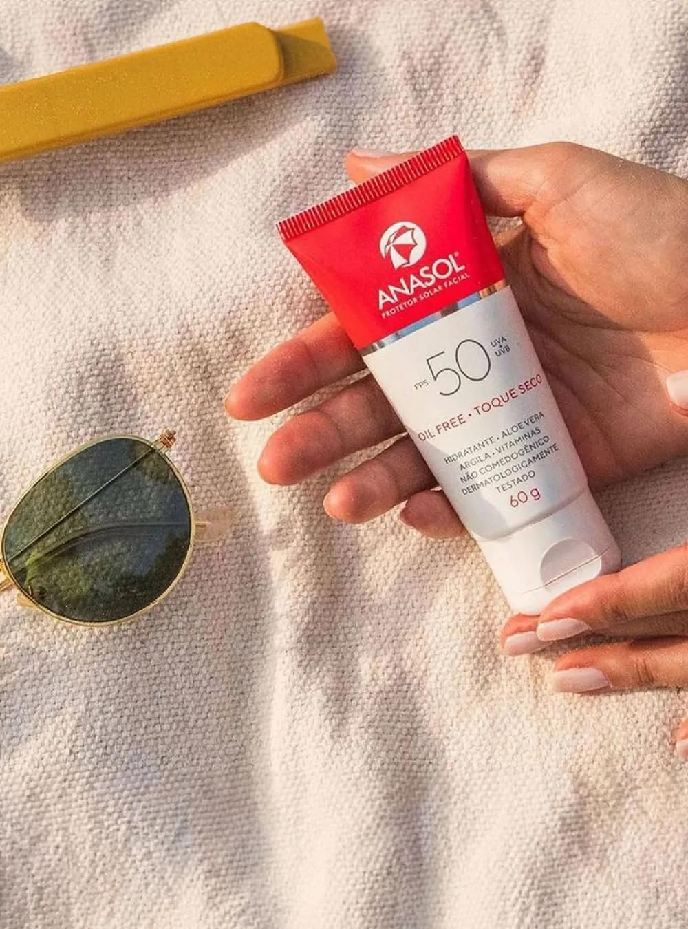 O Protetor Solar Facial FPS 50 60g – Anasol oferece alta proteção contra raios UVA e UVB, prevenindo queimaduras solares e o envelhecimento precoce. Sua fórmula é leve, não oleosa e indicada para peles sensíveis, garantindo hidratação e cuidado diário. O tamanho de 60g é prático para o uso contínuo.