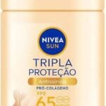 O que é? O novo Protetor Solar Tripla Proteção Fluido Antissinais tem Fórmula ultraleve e muito alta proteção solar. FPS 65 protege dos raios UVA/UVB, combate radicais livres causados pela poluição, ainda uniformiza a pele e reduz linhas finas. Para que serve o NIVEA Sun Facial Tripla Proteção Fluido Antissinais FPS 65? Cuidado intensivo diário de triplo combate contra: Raios UVA / UVB. Radicais livres causados pela luz visível. Poluição. Garante efeito de pele renovada em 4 semanas. Reduz rugas e linhas de expressão, mesmo na área dos olhos. Aumenta a produção de colágeno. Textura ultraleve, fórmula com algas marinhas e não interfere na duração da maquiagem. Benefícios e diferenciais – FPS 65 Alta Proteção Solar – Fórmula com algas marinhas – Textura ultraleve – Garante efeito de pele renovada em 4 semanas – Aumenta a produção de colágeno – Não interfere na duração da maquiagem – Extra resistência à água e ao suor – Reduz rugas e linhas de expressão, mesmo na área dos olhos Como usar o NIVEA Sun Facial Tripla Proteção Fluido Antissinais FPS 65? Agite antes de usar. Aplique abundantemente antes da exposição ao sol. Reaplique o produto a cada 2hrs ou depois de transpiração excessiva ou mergulho na água. DICA: Oferece muito alta proteção contra queimaduras solares e é indicado para pele extremamente sensível à queimadura solar. CUIDADO: Filtros solares em contato com o tecido podem causar manchas. Uma unidade contém 40ml